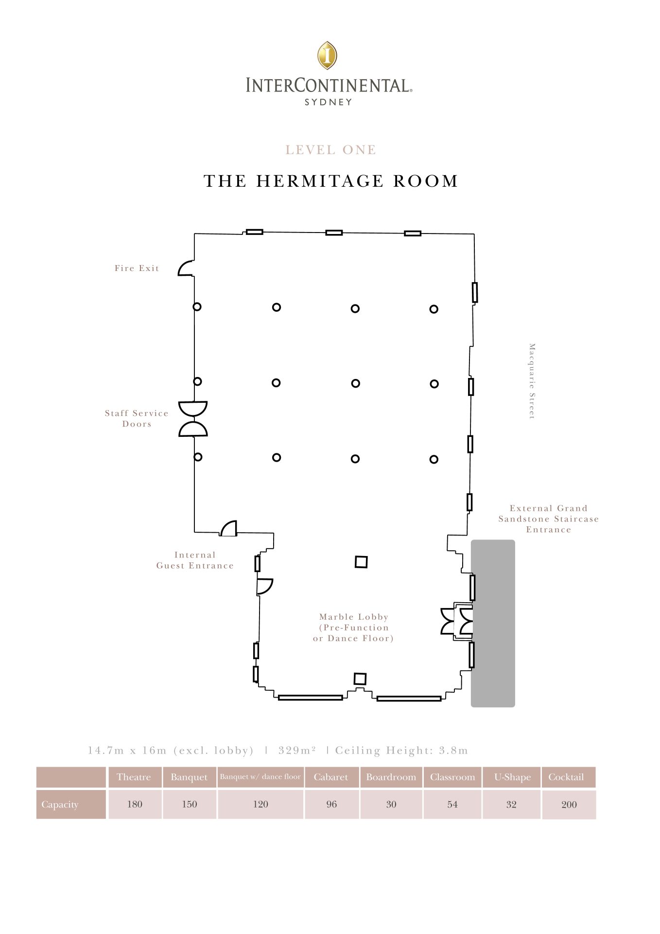 The darling of our venue collection, Hermitage Room is one of Sydney city’s most unique function spaces, imbued with heritage beauty. A spacious historic venue set opposite the Sydney Royal Botanic Gardens in the heart of Circular Quay, this space hosts a maximum of 200 guests. Ideal for seminars, small conferences, working lunches, gala dinners, cocktail events and more.